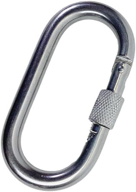 3/8" Carabiner Clip Spring Snap Hook Oval Shape W/ Lock Nut Stainless Steel T316 4PcsMaterial: Stainless Steel T316 which performs superior in corrosion and rust resistance, durability, and strength, applicable for both indoor and outdoor usesPerfect for boating,sailing ,chains, ropes, camping, hiking, fishing, pet, indoor outdoor equipment gearWorks smoothly Opens and closes smoothly. It is more handy to use on big ropes,chains and cablesWorking Load Limit: 600 Lbs *Never exceed the WLL*Overall Length:4''LUnit Weight: 4.80 OunceQuantity: 4Pcs/Set