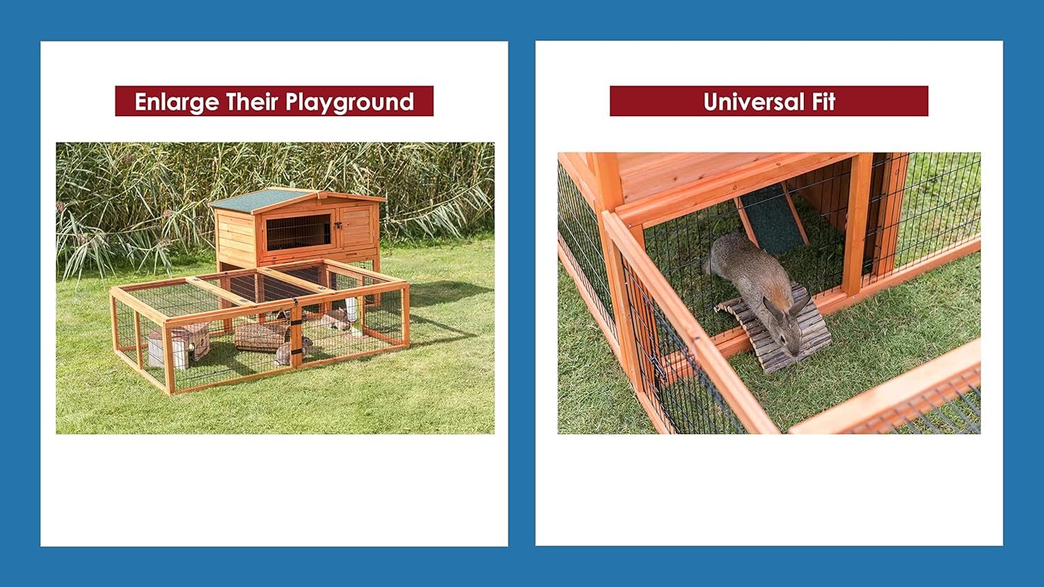 TRIXIE’s Outdoor Run with Mesh Cover is ideal for small animals such as rabbits and guinea pigs. The durable, powder-coated metal lattice, solid wood construction, and glazed pine finish mean this attractive outdoor run will endure years of use with very little maintenance. The enclosure prevents your pets from getting loose and protects them from unwanted visitors. The cover folds open on both sides to make helping your pet in and out far simpler. Includes clips to secure the cover. Folds up for easy storage. Compatible with various TRIXIE Rabbit Hutches. Dimensions: 69 x 43 x 19 inches. Weight: 36 lbs. Color: glazed pine. Quick and easy assembly. One year warranty. Note: Water bottle and bowl not included.